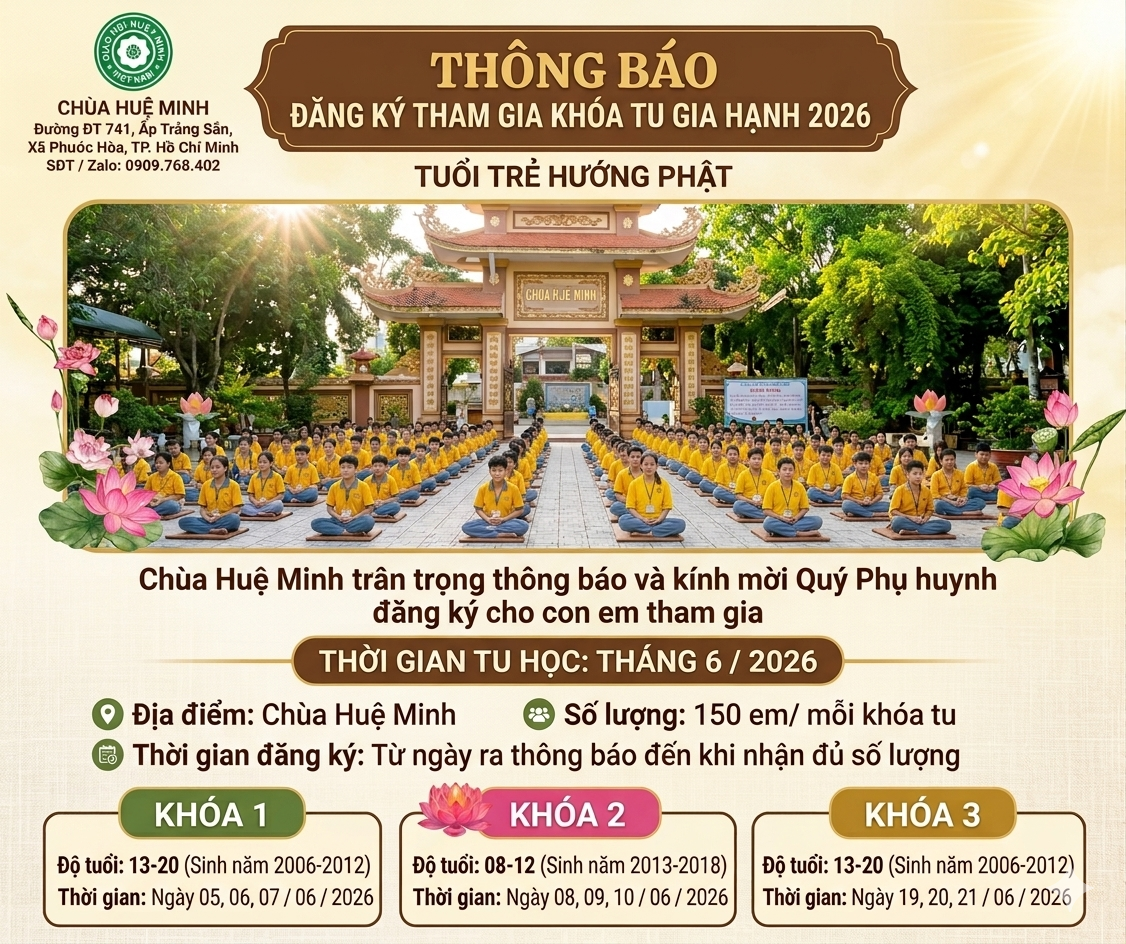 Home Chùa Huệ Minh Thông báo Khóa Tu Gia Hạnh 2026